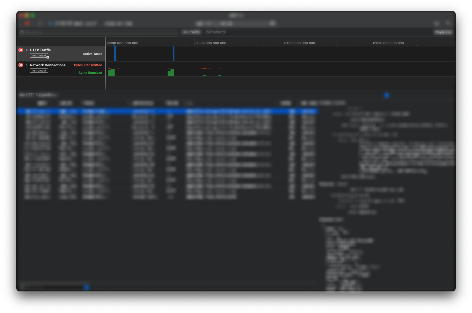 XCode에서 네트워크상 트래픽 세부정보 확인