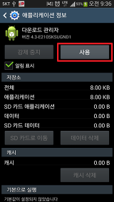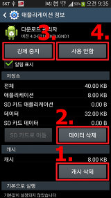 4. 캐시삭제, 데이터삭제, 강제중지, 사용안함